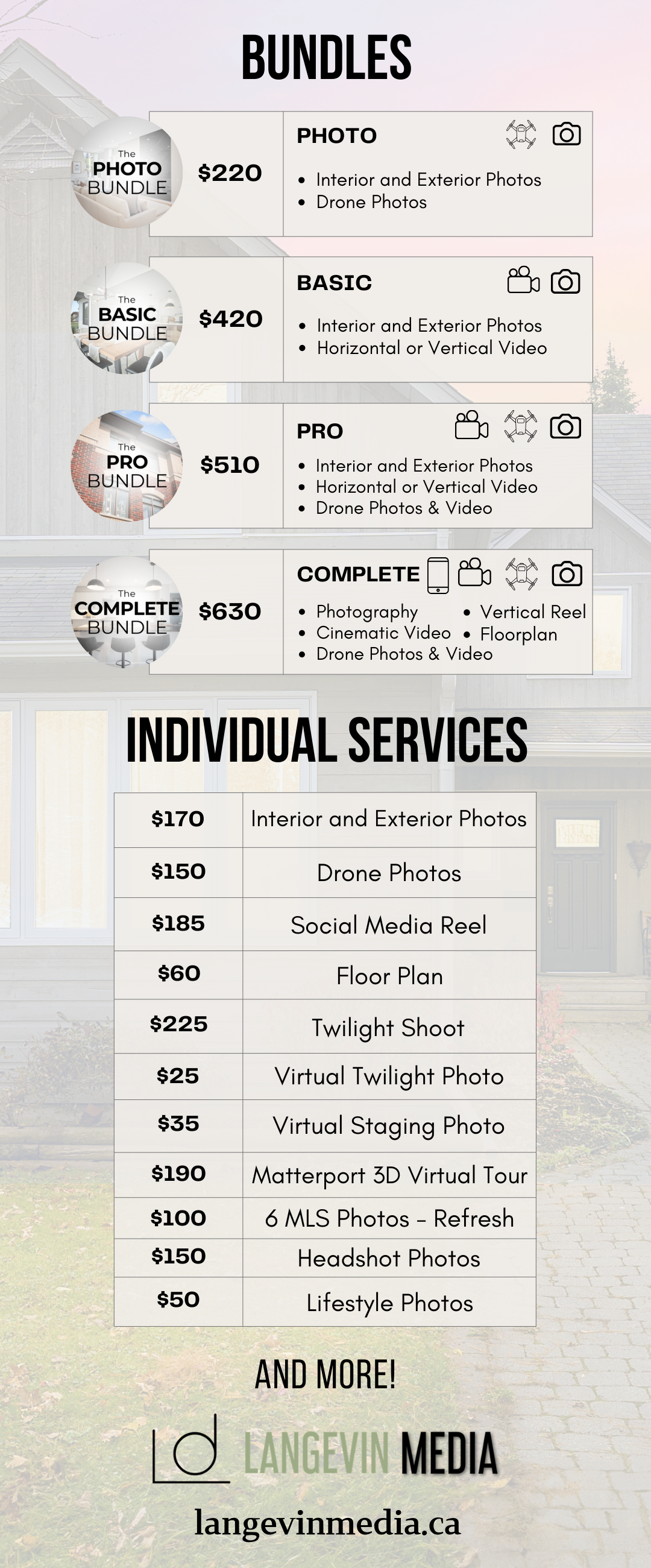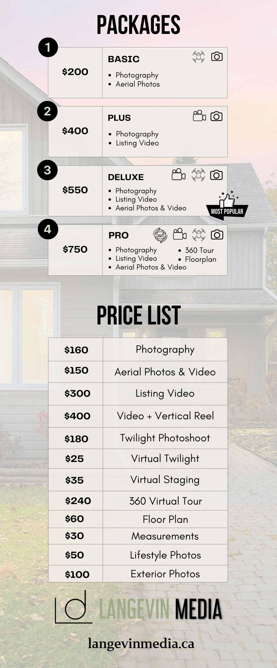 Langevin Media is a full-service real estate media company based in Ottawa & Gatineau offering a range of services including listing photos and videos, drone, 360 tours, branding content and much more. With multiple years of experience, we meet all your content needs, aiming to enhance your brand’s success with services aligned with your goals.